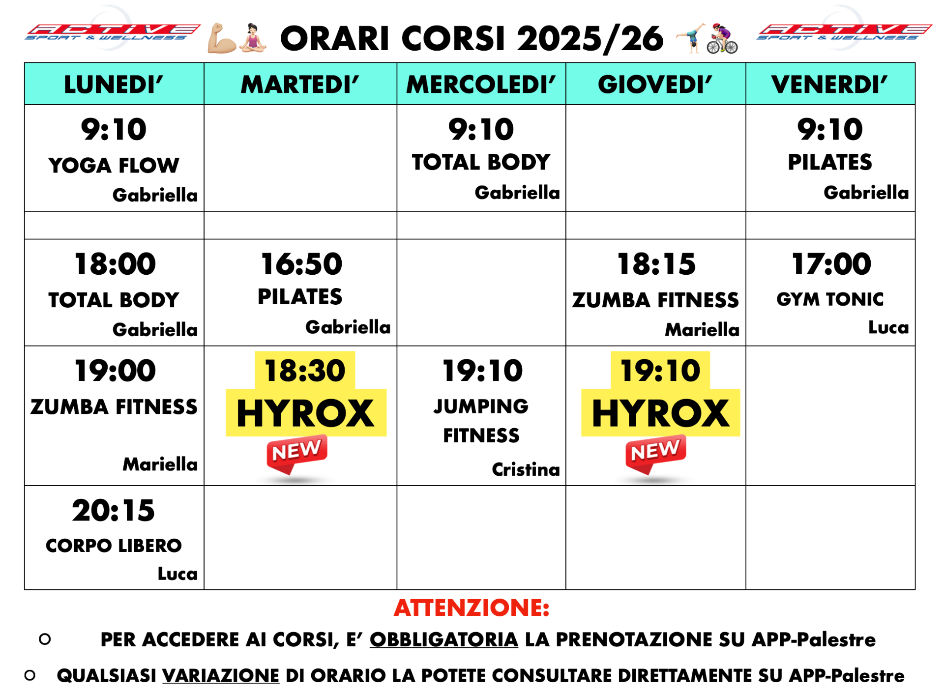 RICORDIAMO CHE PER TUTTI I CORSI E' OBBLIGATORIA LA PRENOTAZIONE TRAMITE L'APP GRATUITA
